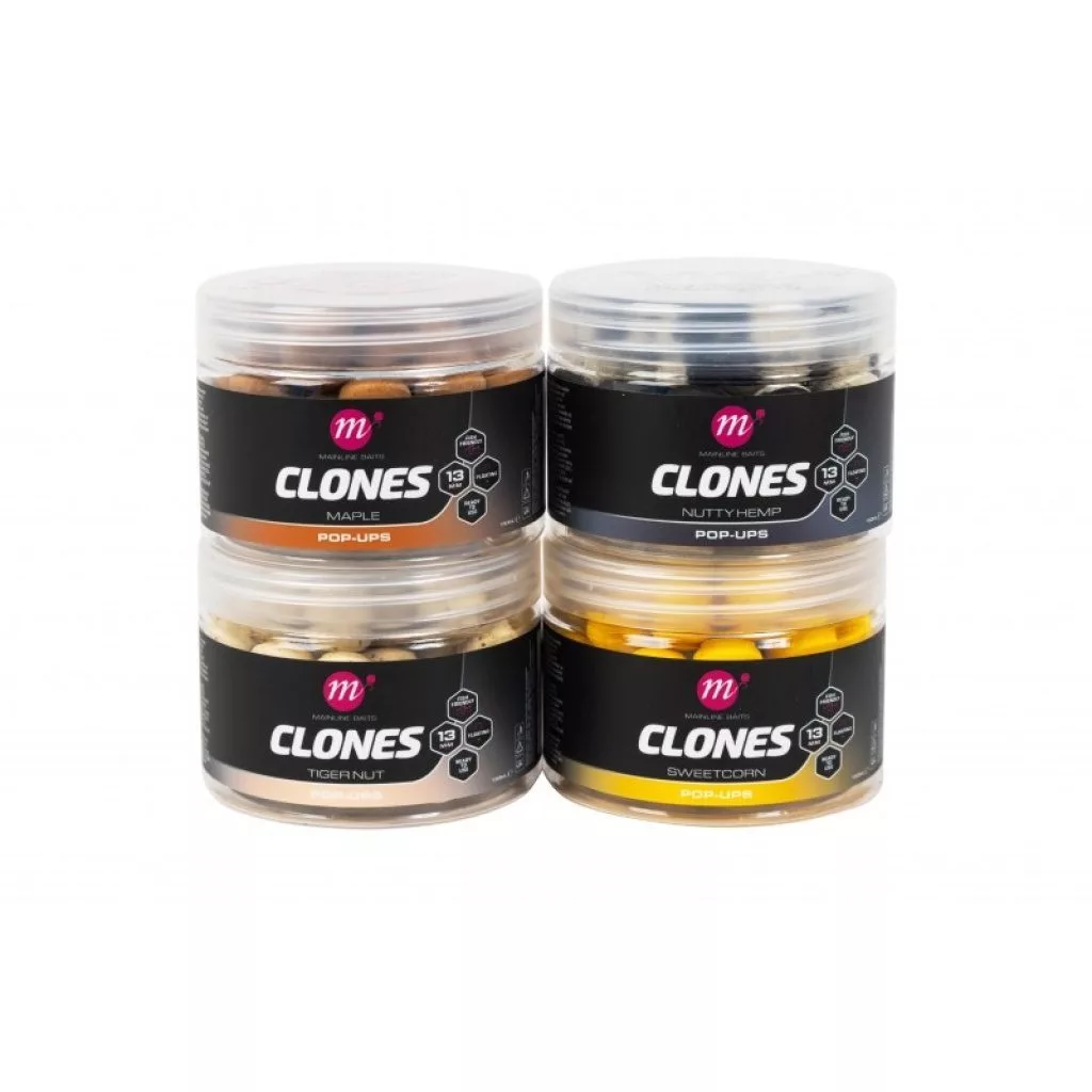 Mainline’s CLONES can be used in any fishing situation, although they are primarily designed to complement particle baits and spod mix feeds to offer a ‘match the hatch’ presentation with enhanced flavour and attraction. Providing a durable hookbait when perhaps baits within the feed such as hemp and corn, are too soft or small to do so. What’s more, Clones are available in both wafters and pop-ups, able to maintain the balance of your rig for long periods of time. Giving the very best chance of a take in any fishing situation.
