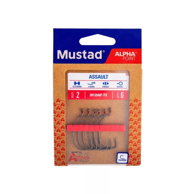 Made to pair with your favorite soft plastics baits, the Tak-Offset Hook cuts through grass and lands big bass in the weeds. The point is offset from the eye so that bait sits flush and maximizes the action of the lure. The aggressive Tak bend was designed for the ultimate weedless range of hooks. The combination of the Tak bend and Mustad’s AlphaPoint® hook point technology culminates for a slimmer, sharper hook that penetrates quickly and efficiently. Using the same Opti-Angle sharpening technique as UltraPoint®, Mustad’s latest hook point offers the durability Mustad known for. The nano-thin TitanX finish with a sleek gun-metal look supports the sharpness of the hook and the smoothness maximizes penetration.